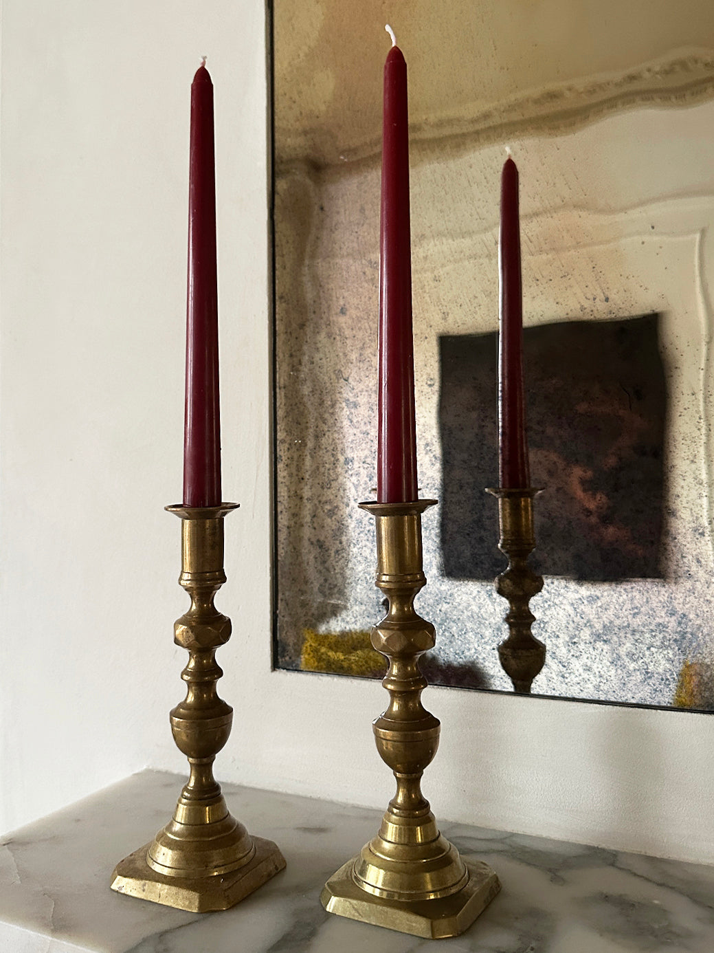 Nothing says Christmas like a pair of antique brass candlesticks. Ours come with two deep red taper candles, so whether you're setting a festive table or gifting someone you love, everything is already perfectly put together.