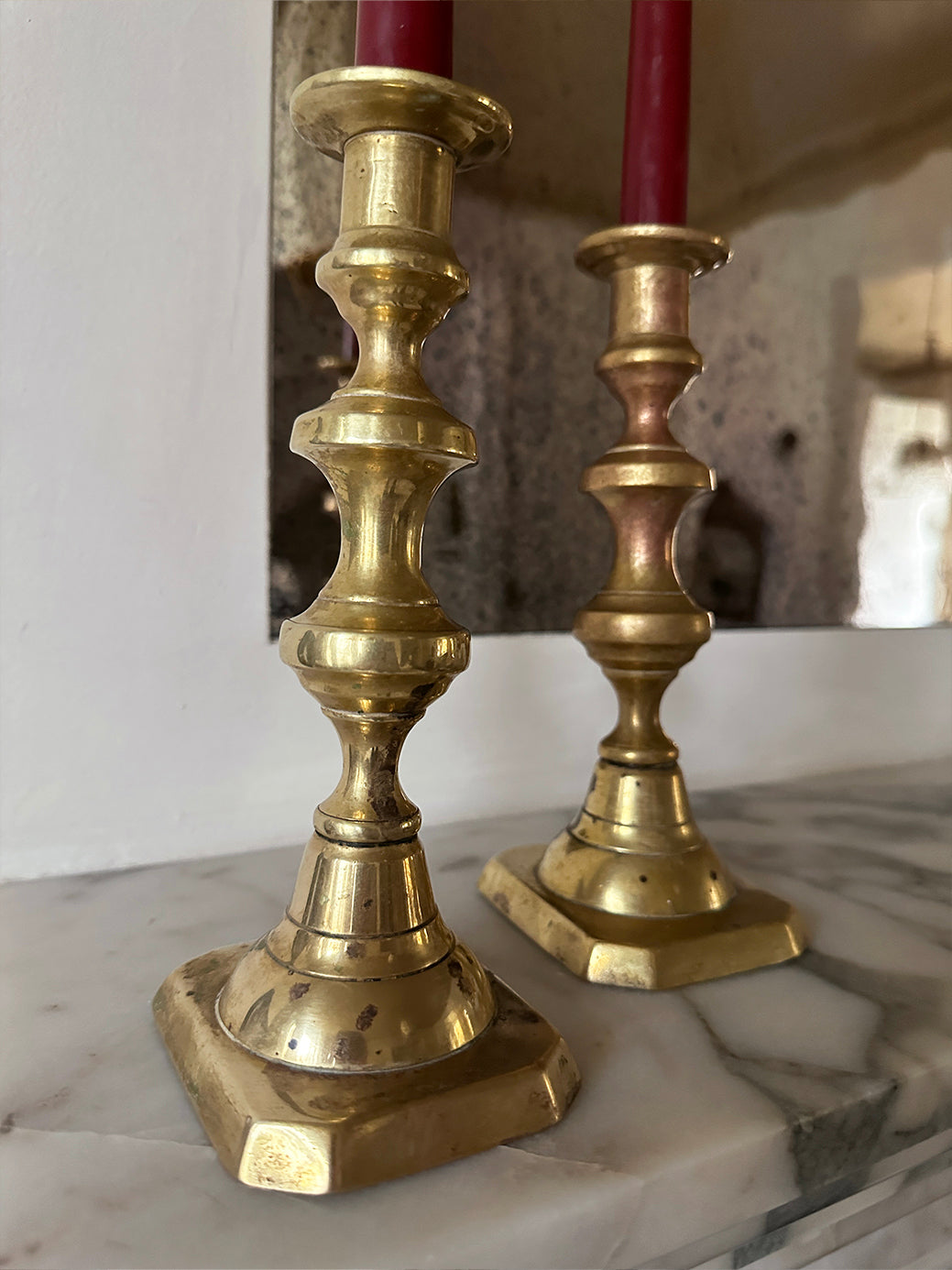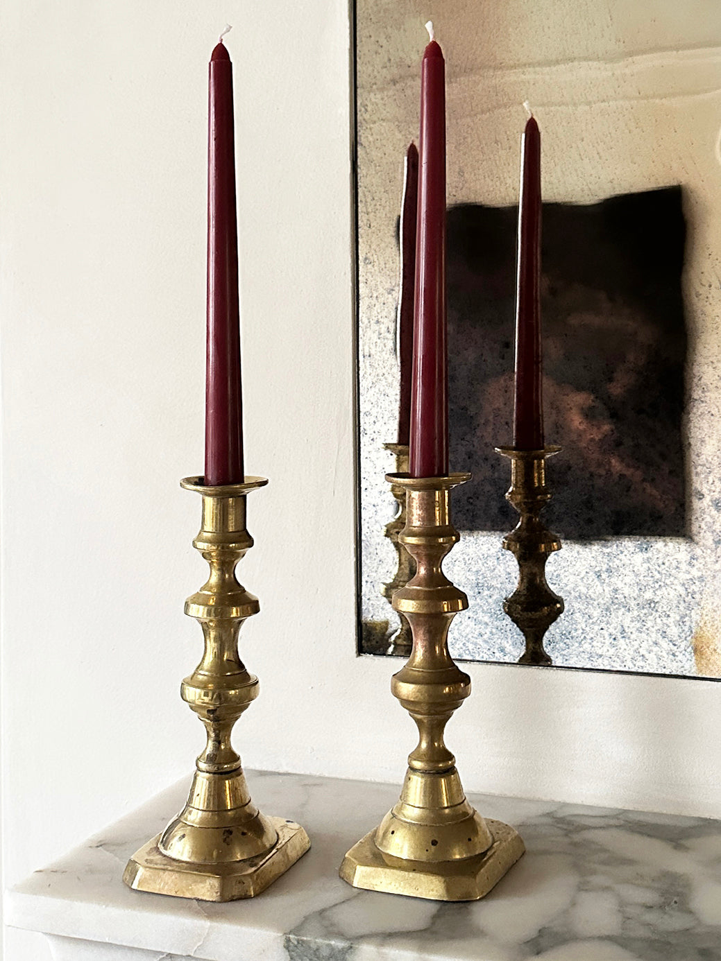 Nothing says Christmas like a pair of antique brass candlesticks. Ours come with two deep red taper candles, so whether you're setting a festive table or gifting someone you love, everything is already perfectly put together.