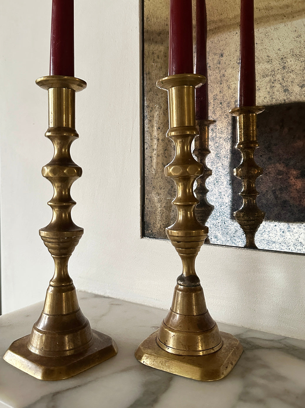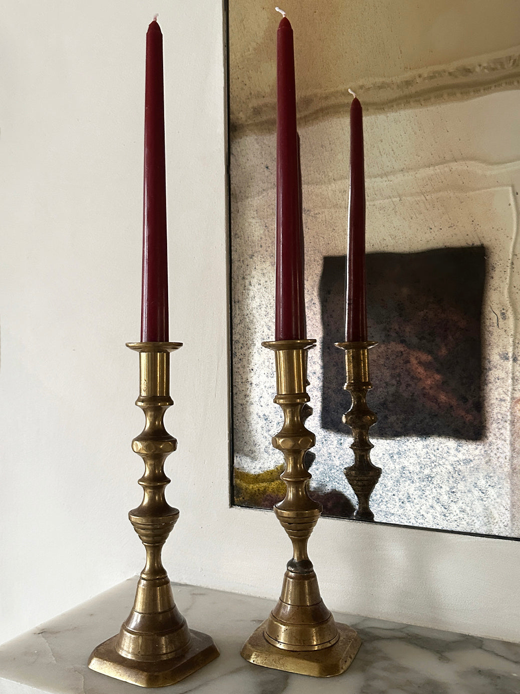 Nothing says Christmas like a pair of antique brass candlesticks. Ours come with two deep red taper candles, so whether you're setting a festive table or gifting someone you love, everything is already perfectly put together.