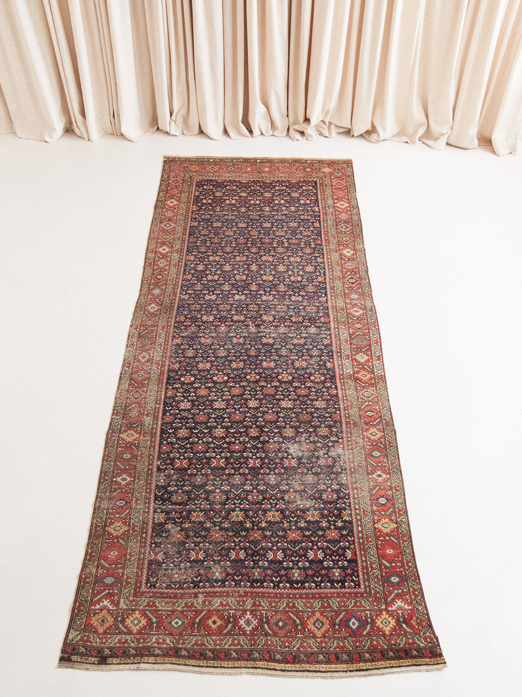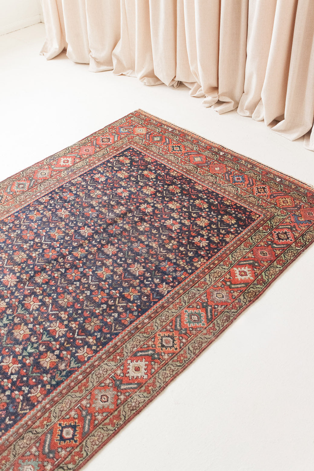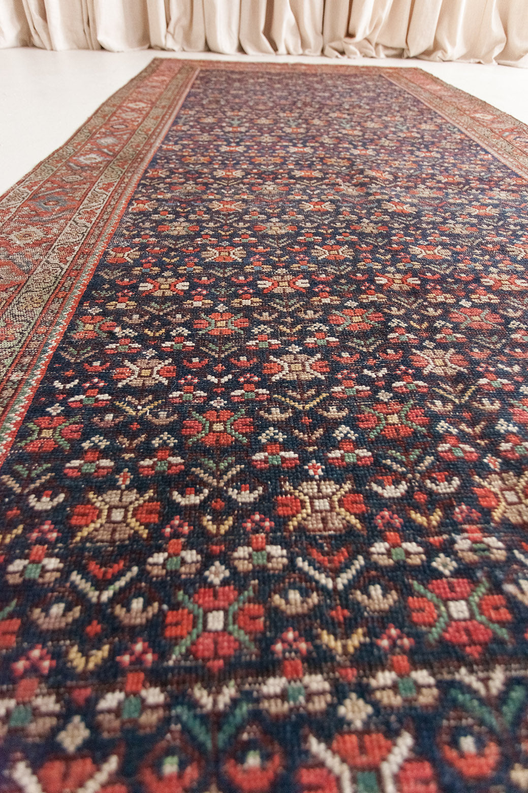 Because of the nature of these antique handmade rugs, irregularities are likely to exist and are not considered defects.