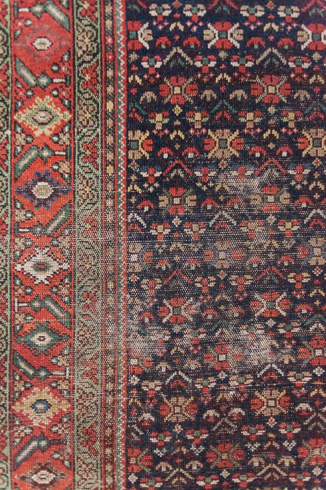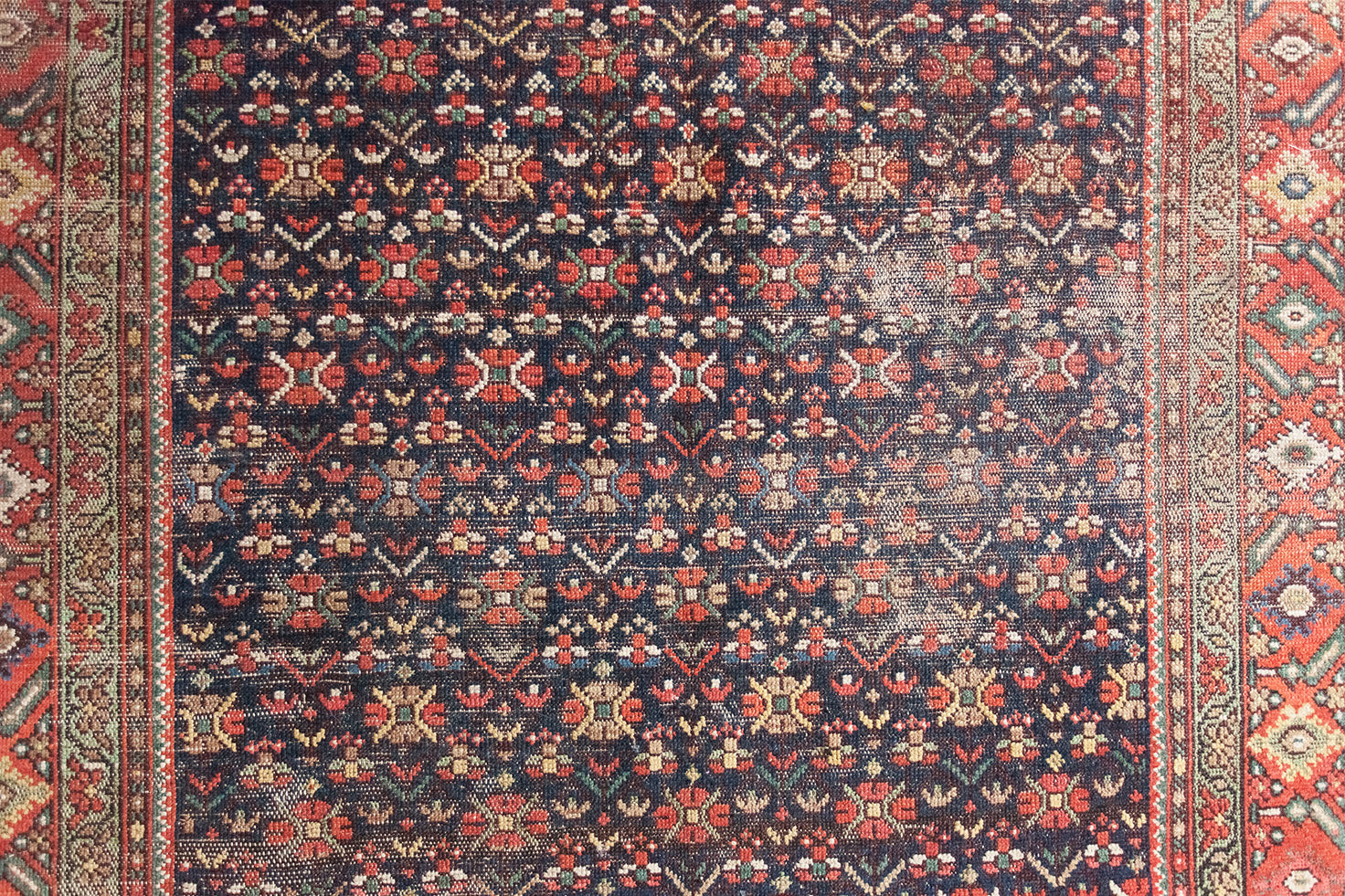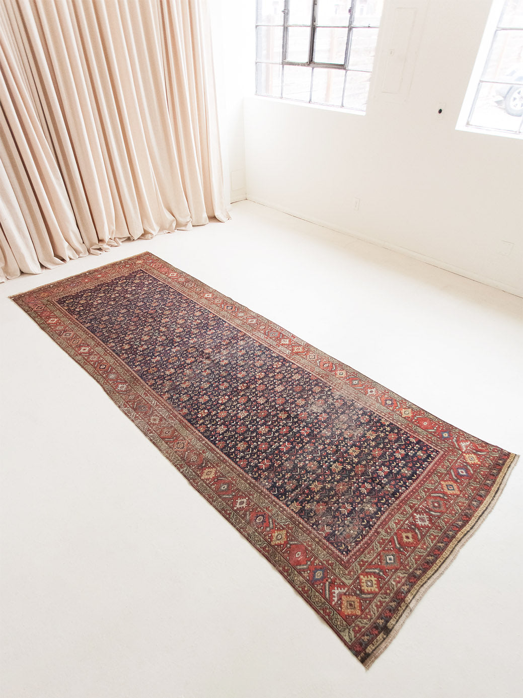 Because of the nature of these antique handmade rugs, irregularities are likely to exist and are not considered defects.