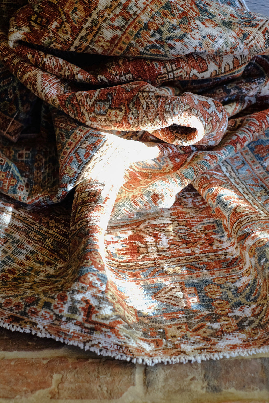All of our rugs are professionally shampooed prior to shipping. As is the nature of antiques, you'll sometimes find little fibres that shake out when you first lay it down. This is perfectly normal and nothing a quick vacuum won’t solve.